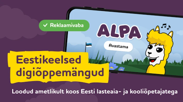 ALPA Kids предлага дигитални образователни игри за деца 3-8 години. Учете числа, азбука, форми, естонска природа и много други на естонски език. Разработени с експерти, игрите използват примери от местната култура и природа.
