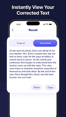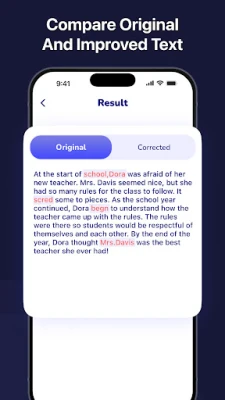 Със своите интелигентни възможности, Grammar Checker: Sentence Corrector & Proofreader незабавно разпознава и коригира граматически неточности, правописни грешки и проблеми със структурата на изреченията в реално време. То предлага подобрени предложения за по-голяма яснота и коректност, подкрепени от изкуствен интелект. Не просто коригира, а и образова – предоставя подробни обяснения след всяка проверка, за да учите от пропуските си. Приложението включва богат речник с дефиниции, синоними и правилна употреба на думи, както и функции за адаптиране на тона на текста – от официален до непринуден или професионален. Допълнително, поддържа четене на текст и превод на 109 езика, разширявайки значително обхвата на вашето писане.