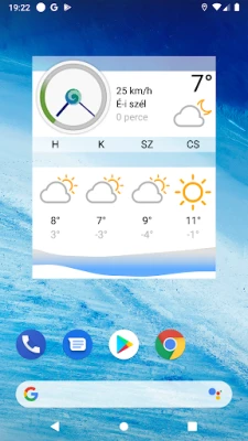 С Метеора получавате не просто време, а интелигентна джаджа, която ненатрапчиво показва както точния час, така и прогнозата за Вашето текущо местоположение. Върху традиционния циферблат на часовника интуитивно се визуализират очакваните валежи, информация за опасни метеорологични явления и дори предупреждения за бури над езерата. Джаджата непрекъснато се обновява с актуални метеорологични данни, адаптирани към Вашето местоположение, като същевременно оптимизира консумацията на батерия, използвайки само необходимите средства (Wi-Fi, GSM, GPS). За по-обширен преглед, Метеора предлага и четиридневна прогноза, достъпна както през уиджетa, така и чрез детайлен изглед на карта, с разбивка до шест часа.