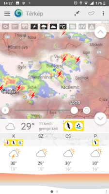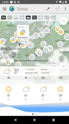 Едно докосване на аналоговия часовник на Метеора разкрива пълнофункционалното приложение, отваряйки интерактивна карта, която нагледно представя метеорологичните условия в цяла Унгария. Тук можете да персонализирате свои собствени предупреждения – задайте конкретни метеорологични събития и Метеора ще следи прогнозите, алармирайки Ви преди настъпването им. Освен това, приложението Ви дава възможност да станете активен участник в метеорологичната мрежа: изпращайте анонимни наблюдения или потвърждения със снимки чрез MET-ÉSZ идентификатор, които могат да се появят на официалния уебсайт на OMSZ. Метеора е не просто приложение, а цялостна система, която Ви държи в течение и Ви свързва с метеорологичната общност.