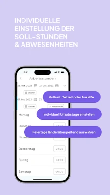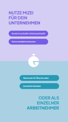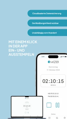 С MiZei винаги ще имате пълен и прецизен до минута преглед на вашето работно време – ежедневно, седмично, месечно и годишно. Следете без усилие вашите отпуски, официални празници и болнични дни. Стартирайте или спирайте отчитането на работното време само с едно кликване, по всяко време и от всяко място. Независимо дали използвате MiZei на вашия смартфон, таблет или чрез браузър на компютър, всички ваши записи се синхронизират моментално благодарение на облачната технология, осигурявайки последователност на всички устройства.