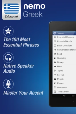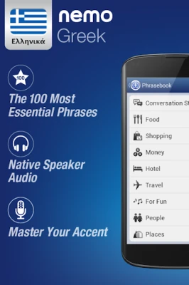 Nemo ще ви помогне незабавно и уверено да проговорите най-полезните думи на гръцки език. Приложението е предпочитано от милиони потребители по света и вече е достъпно за Android.