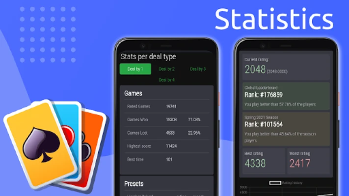 Искате да измерите силите си и да се изкачите на върха? Вашата игра автоматично се следи с подробна статистика, която ви дава възможност да сравнявате резултатите си с други играчи и да повишавате своя рейтинг в глобалните класации, подобно на шахматните елитни системи. Играйте без ограничения, избирайки между безплатния режим или премиум версията без реклами, за да се потопите напълно в света на Косинка - Klondike. За всякакви въпроси, предложения или нужда от съдействие, екипът на softick е винаги на ваше разположение на