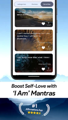 Открийте своя път към по-уверено, вдъхновено и радостно Аз с Uplift – Positive Affirmations. Тази уникална платформа е създадена да бъде вашият ежедневен ритуал за позитивизъм и личностно израстване, предлагайки ви свеж поглед върху света – едно утвърждение след друго. Без никакви реклами и с изключително красив дизайн, Uplift – Positive Affirmations ви осигурява спокойно убежище, където можете да преформулирате негативните мисли и да изградите по-силна, по-оптимистична нагласа. Независимо дали се справяте с тревожност, съмнения в себе си, или просто търсите повече фокус и яснота в ежедневието, Uplift – Positive Affirmations е до вас.