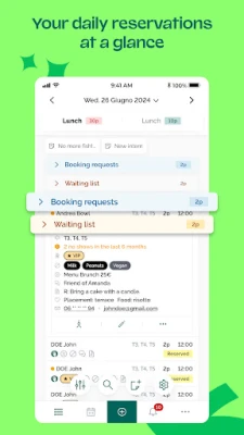 Представете си идеално организиран дневник с резервации. С TheFork Manager получавате ясен и изчерпателен поглед върху всички предстоящи посещения. Разгледайте детайлите на всяка резервация, достъпете специфични клиентски заявки и предпочитания, и се подгответе за пристигането им по възможно най-добрия начин. Тази персонализирана информация ви дава силата да създавате уникално и индивидуално отношение, което превръща случайните посетители в лоялни клиенти.